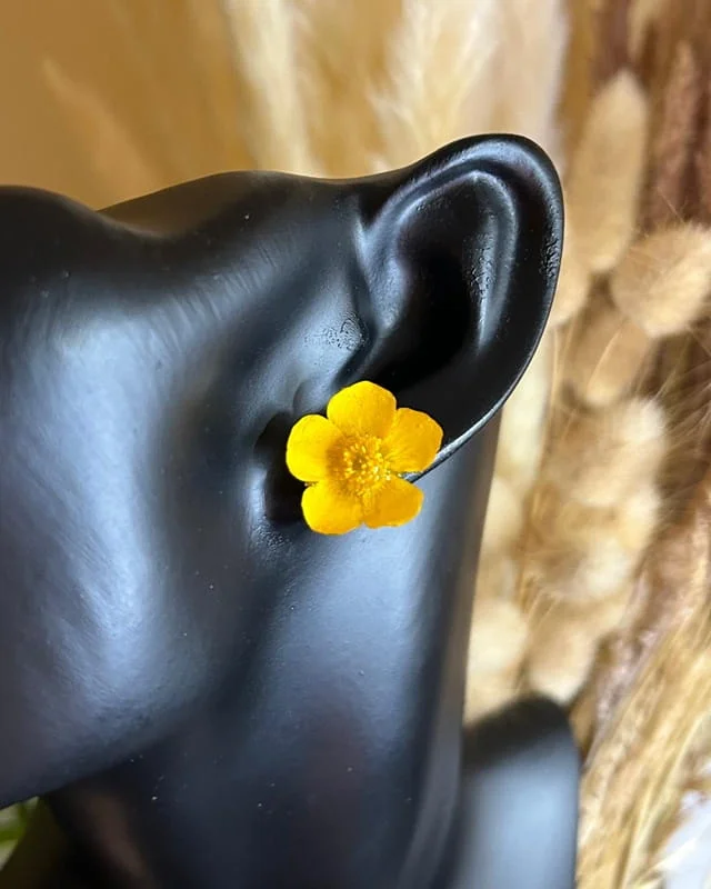 De véritables fleurs de bouton d’Or captures en relief, comme un éclat de soleil figé dans le temps, pour une touche de douceur et de lumière a vos oreilles.